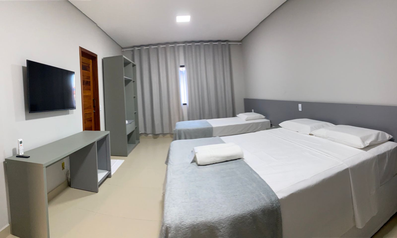 Quartos equipados com com banheiro privativo, chuveiro quente, ar-condicionado, TV's, frigobar, wi-fi!